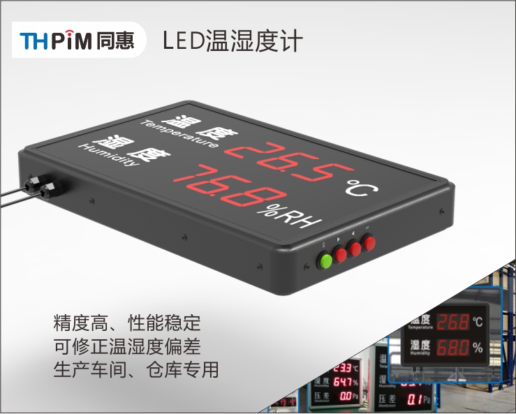 大屏報警溫濕度顯示屏看板由同惠公司自主設計、研發(fā)與生產(chǎn),它是一款高精密溫濕度測量儀器。采用原裝進口溫濕度一體傳感器,高精度、品質好,實用性強。 產(chǎn)品特點:1、外觀時尚簡潔,結構牢固,壁式使用。測量精度高,品質好。2、采用高亮LED數(shù)碼管顯示,顯示數(shù)字清晰,可視距離20~75米。2、溫濕度偏差校準功能,當溫濕度測量值出現(xiàn)誤差時,可用此功能進行校準。